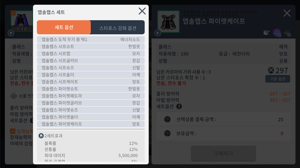 - 캐릭터 능력치에 표시되지는 않지만, 효과는 정상적으로 적용됩니다.