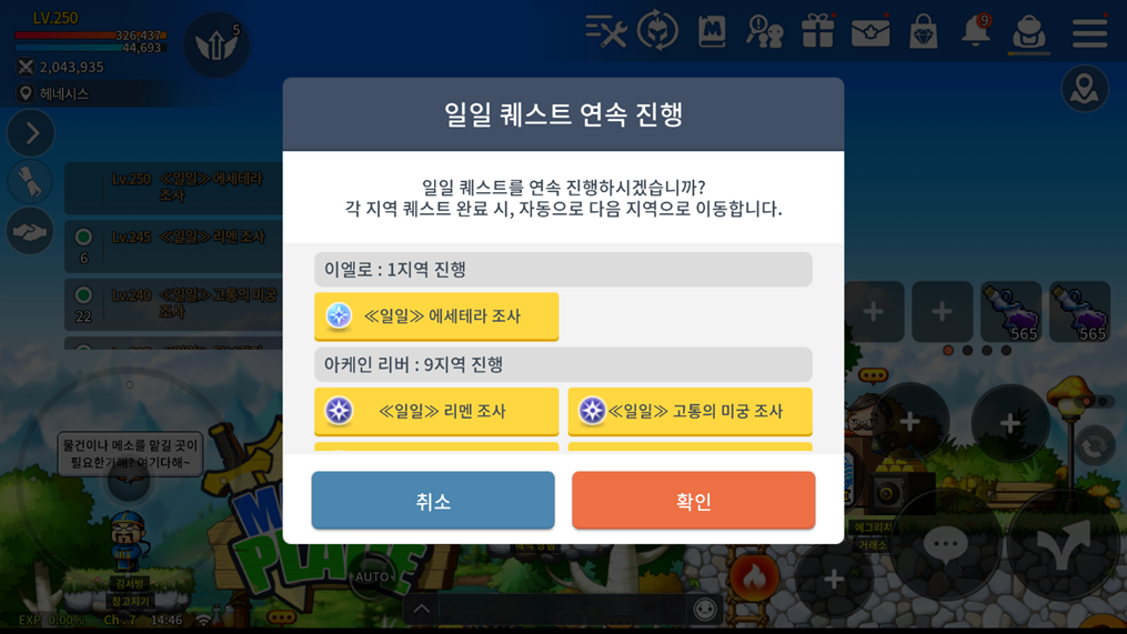 2. 아케인 리버 지역 일일 퀘스트 개선