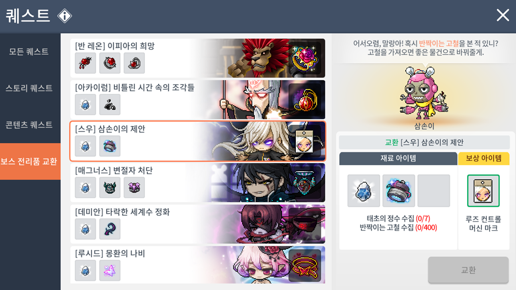 6. 보스 아이템 교환 퀘스트 개선