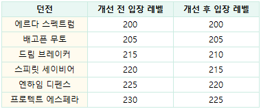 - 레헬른 이후의 아케인 리버 던전의 입장 레벨이 완화되었습니다.