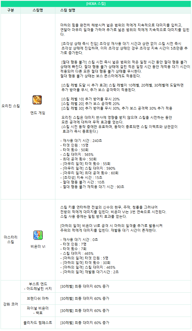 - 히어로 '어드밴스드 파이널 어택' 스킬 설명에 타격 횟수 증가에 대한 내용이 누락된 현상 수정