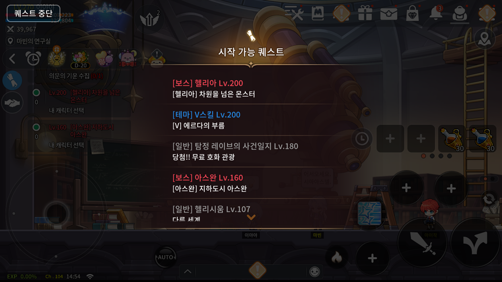 - 영웅, 패스파인더, 레지스탕스, 데몬, 제논 직업군으로 '[아스완] 지하도시 아스완' 퀘스트를 진행했을 때,