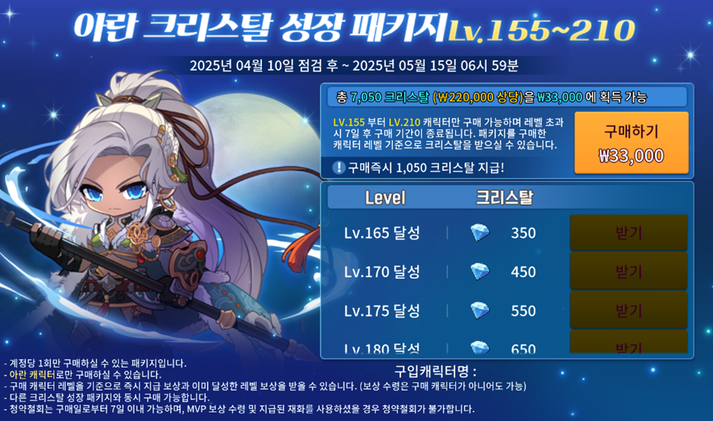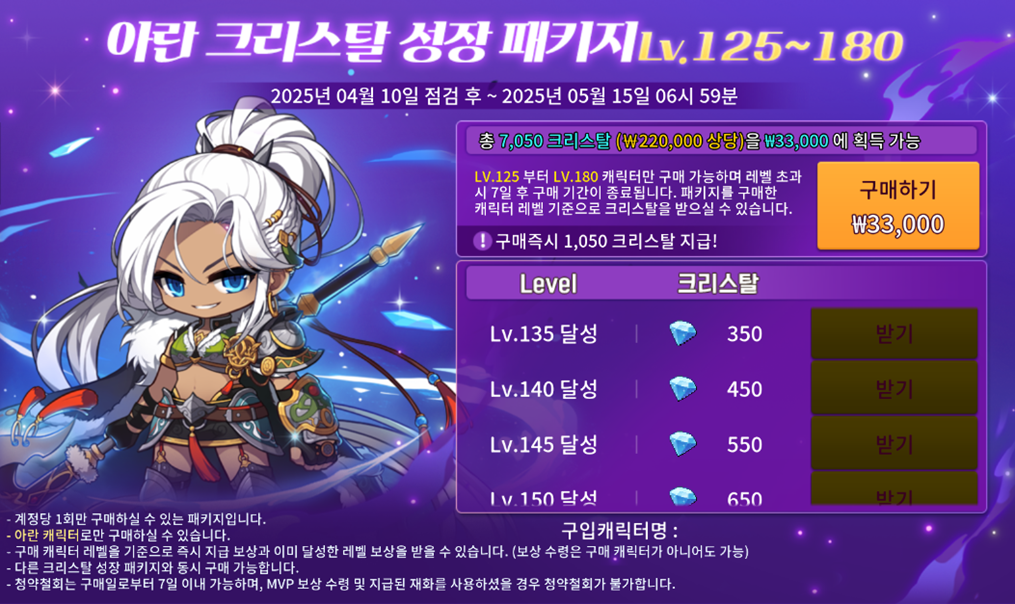 - 아란 리마스터와 함께, 업데이트 이후 아란의 기본 외형 및 기본 착용 장비가 변경됩니다.
