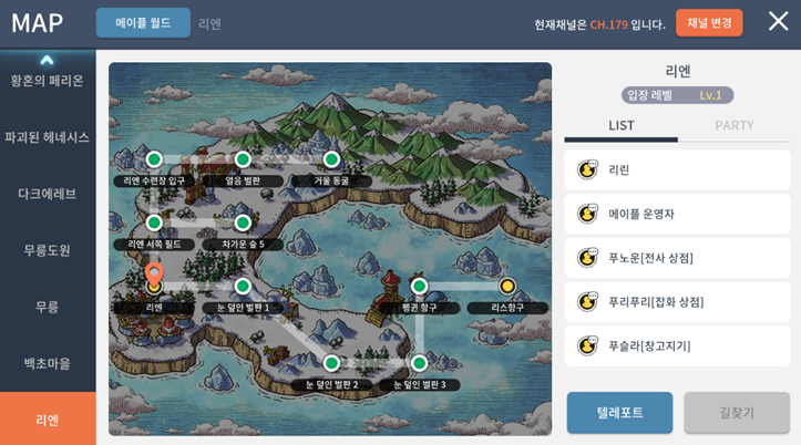 - 리엔 필드 중 리엔, 거울 동굴 필드의 외형이 변경됩니다.
