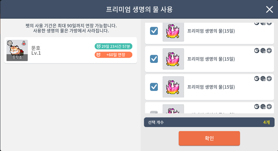 - 펫 기간 만료 팝업창의 위치를 조정하고, 생명의 물 구매 및 사용 버튼과 문구의 크기를 통일했습니다.