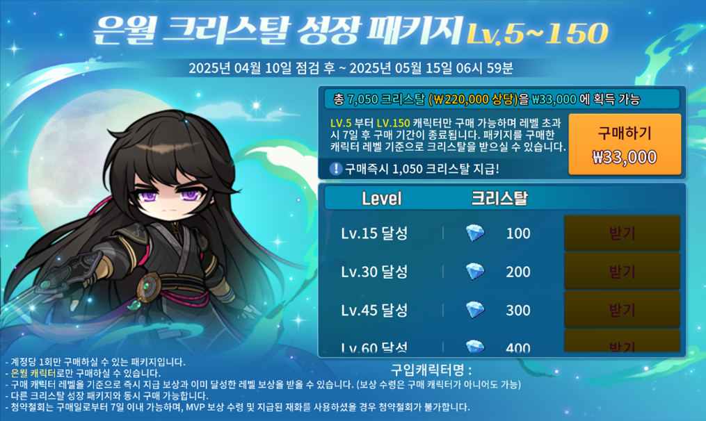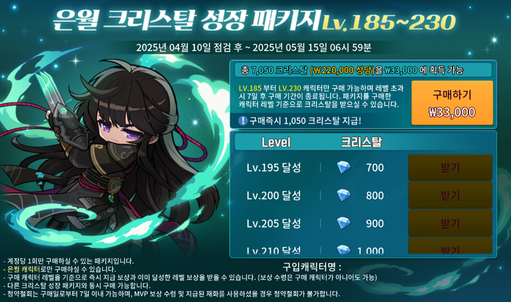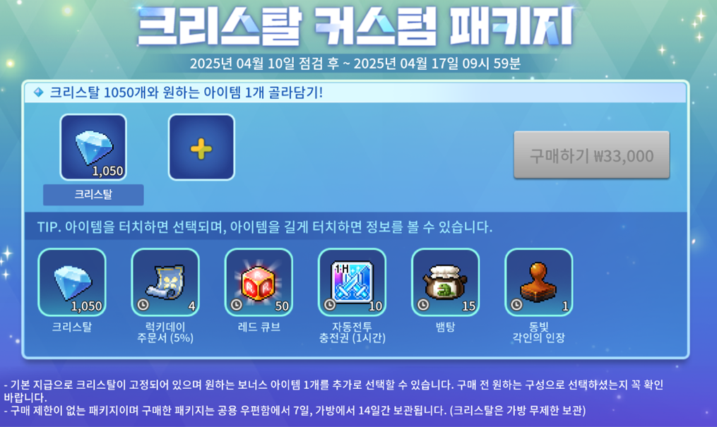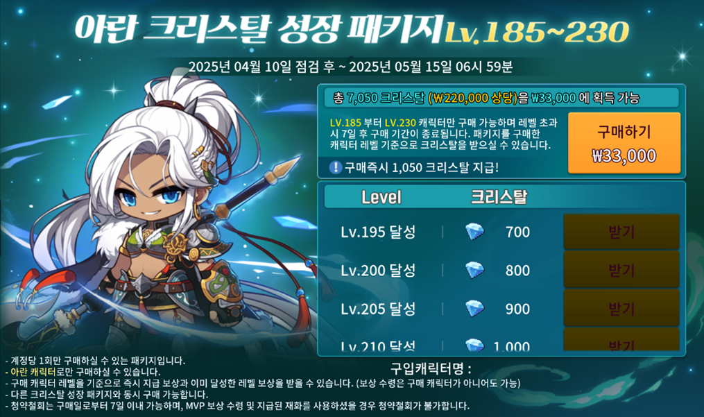 - '크리스탈 성장 패키지'에서 보상 획득 후, 다음 보상 획득 위치로 스크롤 되지 않는 현상 수정