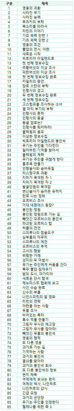 - 은월 리마스터 신규 에픽/노말 퀘스트 목록은 다음과 같습니다.