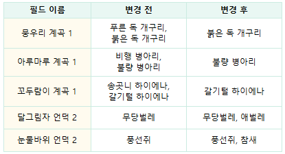 - 뾰족귀 여우마을과 연결된 일부 필드에 배치된 몬스터 종류가 변경됩니다.