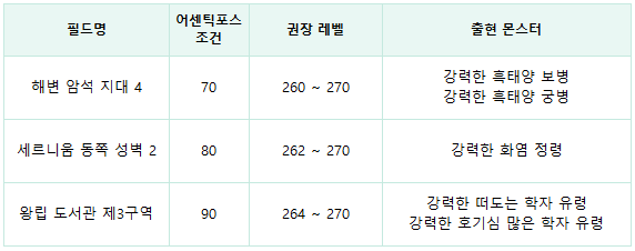- 세르니움에 신규 어센틱포스 필드 3종이 추가됩니다.