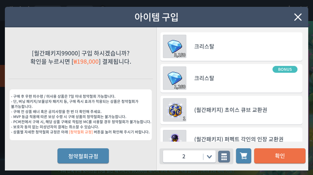 - 패키지 구매 시 등장하는 아이템 구입 팝업 내 문구 오탈자 수정