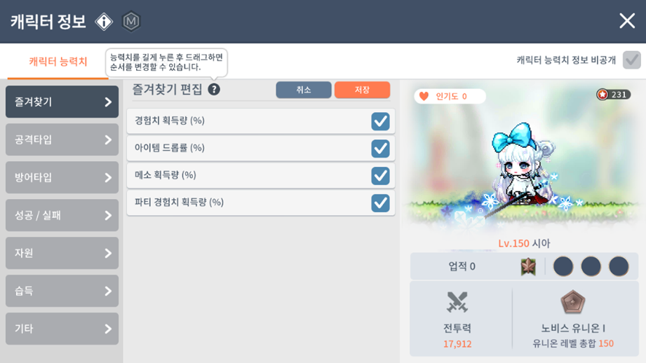 - 아란 '콤보 어빌리티' 스킬의 콤보 카운트 추가 획득 기능이 라이딩 및 의자를 사용하고 있을 때는 동작하지 않도록 개선됩니다.
