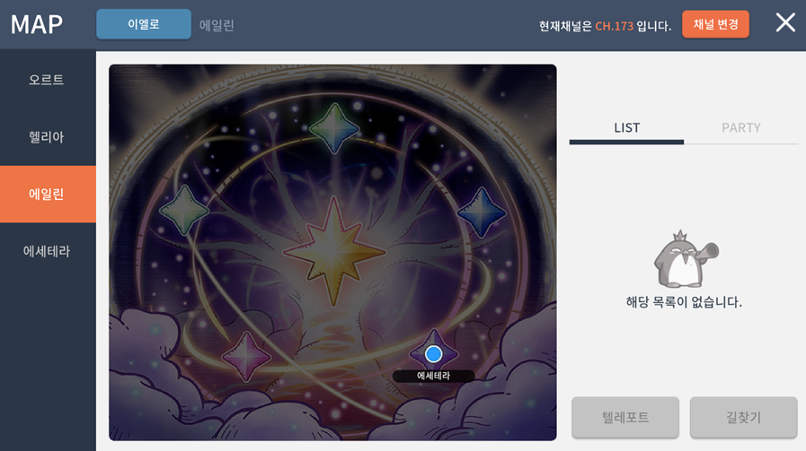 - ‘이엘로’ 의 ‘에일린’ 탭에서 고대의 별자리 관련 지역을 확인할 수 있습니다.