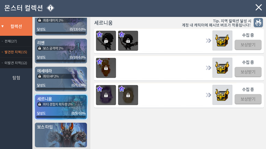 - 신규 지역 ‘세르니움’이 추가되면서, 몬스터 컬렉션에도 세르니움 지역 컬렉션이 추가됩니다.