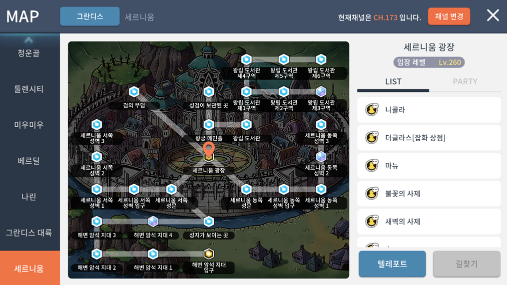 - 세르니움 지역은 Lv.260부터 확인할 수 있습니다.
