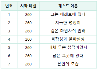 - 추가되는 일일 퀘스트는 아래와 같습니다.