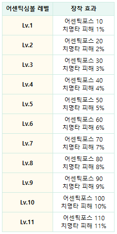 - 장착 중인 어센틱심볼이 없거나, 장착한 모든 어센틱심볼이 최대 성장치면 일괄 성장을 진행할 수 없습니다.