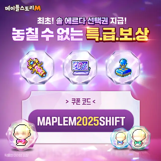 메이플스토리M 2025 SHIFT 특별 쿠폰 이벤트 🎁 (~ 7/30) - 메이플스토리M