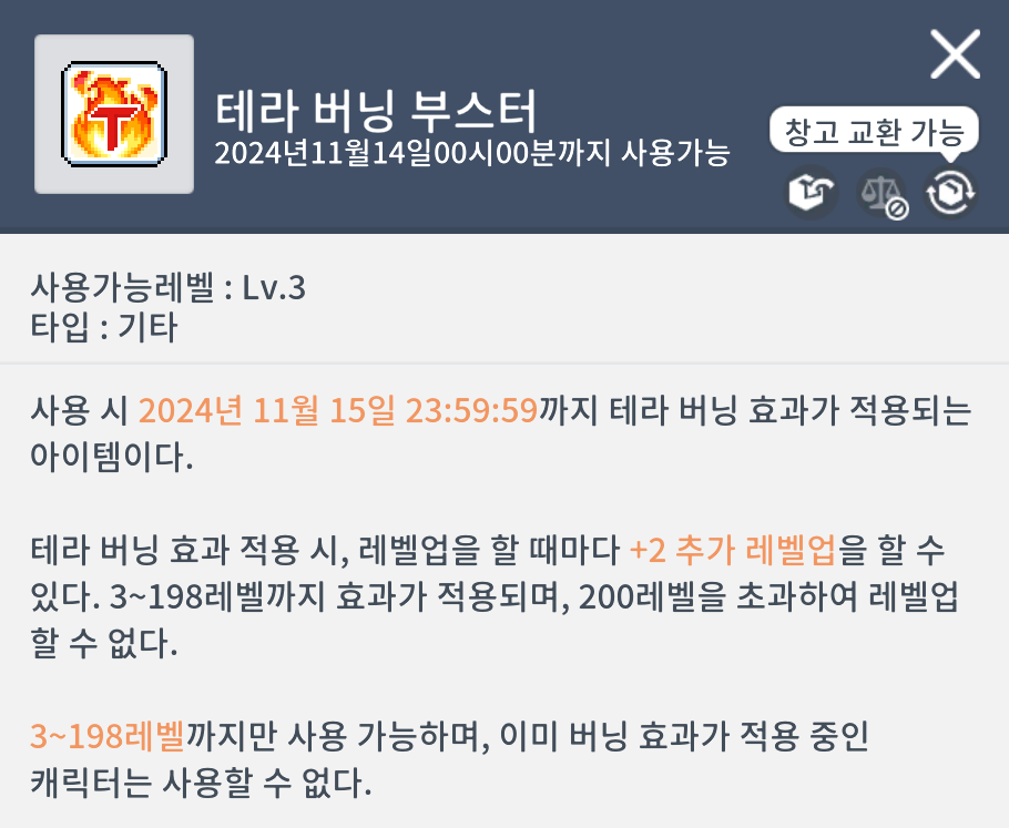[메이플M] 6번째 테라버닝 (10.18일부터 시작 가능) (버닝기간 : 2024.11.15 까지)
