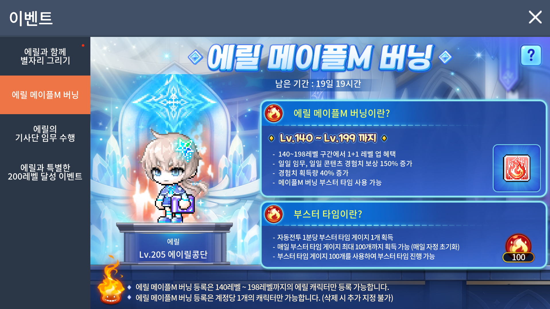 [메이플M] 6번째 테라버닝 시작 = 기존 캐릭터도 버닝 지정가능 (성장의 비약 사용가능)