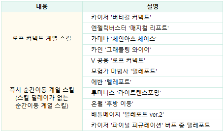 - 일부 스킬은 스킬 키 연속 입력 기능이 적용되지 않습니다.