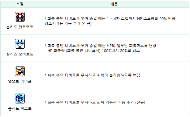 * 모든 스킬 개편 내용은 최대 스킬 레벨 기준으로 작성되었습니다. 추가로 일반적인 상향이 아닌 특정 스킬이 큰 수준으로 변경되었거나 구조적인 변경이 존재하는 경우 해당 직업의 개편 항목 상단에 상세한 설명을 추가했습니다.